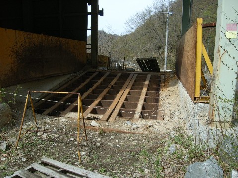 鉱山道路編'09。 途中・・・ ちょっと端折りますが(汗) って言うか、そうでないと物凄く長くなってしまうので・・・(飽) さて、今度は珪砂工場跡に到着した自分。 おなじみの光景が無くなって、もうすぐ1年(涙)。 やっぱし建物がなくなると、一気に寂しい感じになります。 そして・・・ 去年から気になっていたことなのですが・・・ 以前にも書いたことなのですが・・・ この投入用の穴を、砂を詰めて塞いだだけの場所。 嫌な予感がしていたんですけどね・・・ ここ数日の雨の影響もあったのかもしれませんが・・・ 陥没が始まっています!!(滝汗) 間違って、この中に入ったら・・・ ズブズブと沈んでいきそうな予感が!!(怖) って言うか、蟻地獄??? 単に、砂が押し詰まって沈んだだけなら良いのですが・・・ って、それでも手抜き工事ですからね! やはり完全にコンクリで固めておかないと、いつかは大変な事になりそうですし!! 中を覗き込もうとして、この中に落ちてしまう人が出ないとは言い切れません! って言うくらい、結構危険な場所ですし、ココ・・・ さて、ちょっと心配なので、崖下の様子を見てみます・・・ まさか、ココに詰めた土砂が流れ出ていたら大変な事になりますからね! ドキドキの次回(?)に続く!!