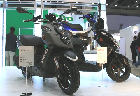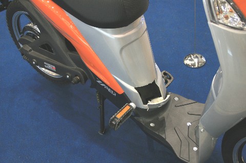 今回の東京モーターサイクルショーに出品されていた電動スクーター達は・・・ とにかく車体を軽量化して消費電力を抑えて走行距離を稼ぐか? それとも、既存のスクーターなみに豪華さを保ちつつも、エンジンから電気モーターへ変更するか? の、2種類に大別されていた感じがします! 4輪の電気自動車と比べ、バッテリーを搭載するスペースの少ない2輪。 バッテリーの高機能化が進んでいるとは言え、まだまだ小型化&大容量化が進んでいない現在!!(涙) ガソリン車だと・・・ 走っているうちにガソリンを消費して車体総重量が減りますから(汗) 自然と、後半には燃費が伸びてくるのですが・・・ いくら走ってもバッテリーの重量が変わらない電動スクーターは、だいたい決まった距離しか走れないのが難点です!(涙) ですから、可能な限り軽量化したいのは分かります! それでも・・・ 以前にヤ☆ハから発売された電動パッソルは・・・(死語?) フル充電で20km走るのがやっと! ちなみに奥多摩住在時代。 自分の通勤距離は片道25km(だって田舎だから!)。 って言うか、会社まで辿り付けへんやん!!(泣) とか思ったこともありました(笑)。 ま・・・ そんな事は置いといて・・・ 上の画像の電動スクーター。 ちょっと変わっていたのが・・・(汗) これ・・・ 電動モペットやん! 恐らく、スピードは40キロも出れば良いほうでしょう! って言うか、スピードの速いモペットは怖そうですし・・・(震) こうしてまでも走行距離を稼ぐのが現状なのか!? ただし! ステップの下に大容量のバッテリーを搭載して、既存のガソリンエンジン式のスクーターと遜色ない車体を使った電動スクーターも多数出展されています! ま・・・ どちらにせよ、試作機の段階に近い状態なのでしょうけど?(汗) さて・・・ どちらの陣営が(軽量 vs 豪華)生き残るのか? それとも共存できるのか? 来年以降のモーターサイクルショーでの動向が気になります!