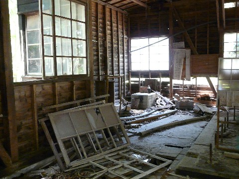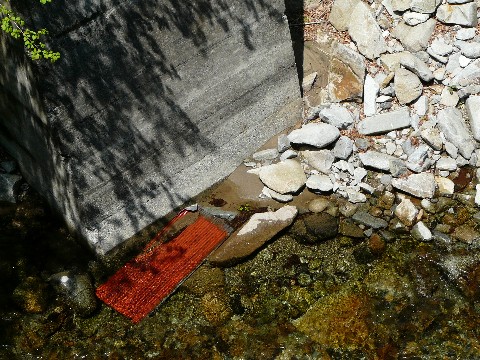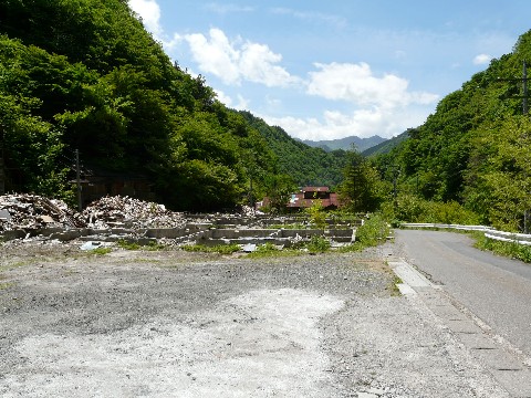 たぶん、今月いっぱいでは終わりそうにない鉱山道路編'09(涙)。 さて・・・ とりあえず、鉱山の売店跡が解体されずにいて一安心していた自分。 相変わらず板が釘打ちされていて、物々しい状態になっていますが・・・(涙) あと、そんな所に同業者(?)が!!(笑) 山形から就職で埼玉に出てきたと言う400SF乗りの人。 本当は違う場所に行く予定だったらしいのですが・・・ つい、この鉱山道路に迷い込んでしまったらしく・・・(汗) って言うか絶対に、ココは何か怪しい力で人を呼んでます!!(汗) 自分も、道を間違えて・・・ ついでに人生の「道」も間違えましたけど!!(爆) この鉱山道路に迷い込んだのが切っ掛けでしたからね!! しかし・・・ 今までの5シーズン。 道を聞かれた以外、一度も誰とも話したことがなかったのに気がつきました!(汗) だって普段は・・・ もっと奥地で「索道が!!」とか「線路が残っていないか?」とか・・・ そんな事ばかり探しているので、まず人と合う事がなかったですからね!!(笑) ちょっとした情報交換をした後、自分は周囲の画像を撮り・・・ 彼はデジタルビデオカメラで、探検記的なものを撮っていたようです。 ただし、ちゃんと決まりは守って指定された場所には入らないように気遣っていましたよ!!(偉) なお、この時・・・ あまりの暑さに、ついにバテて来た自分(恥)。 とりあえず、シャツを一枚脱ぎ・・・ すぐ脇の川風に当たって、しばしの涼を取っていたのですが!! その川の中に・・・ あれ? あの波板・・・ 売店跡の屋根に付いていたヤツじゃないの???(汗) そう・・・ 一番端っこの1枚が、飛ばされてなくなっているは以前から気づいていたのですが・・・ 結構遠く(30m位離れている)の、この場所に落ちていると言う事は・・・ 一昨年の台風9号の力。 想像以上に凄かったみたいですね!!(恐) こりゃ、建物があちこちダメージを受けたしまったのは納得です! 危険なので、人が出入できないようにするのも納得できます! そして・・・ ダメージを受けた一部の建物を解体してしまったのも・・・(泣) つづく。 おまけですが、2005年6月当時の売店跡の様子。