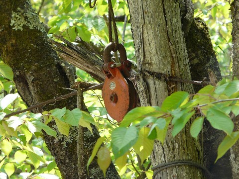 無駄に引っ張っているように気がする鉱山道路編'09。 いや! これでも結構、端折っているんですよ!(涙) そんな事はさて置き・・・ 何故かウェイトが落ちていた道路脇の広場。 その先に何かの気配を感じだ自分・・・(澄) ちょうど画像の矢印の辺り・・・ そう・・・ 何かの影が見えるような気がする・・・ いや、単に「そんな感じがするだけ」なのかもしれませんが(汗)。 でもね! ちゃのうフィルターを通すと・・・ ちゃんと、そこにある物の気配を感じるんですよ! そう。 何か、こう・・・ 線路とか索道っぽい気配が!!(笑) とりあえず、その場所に近付いてみる自分・・・ 置いてあったのは、ただのドラム缶が2本(汗) やべっ! 自分の勘も落ちたもんだな!(凹) と思いつつも・・・ 何かが自分を呼んでいる気がするんです!!(聴) 改めて周辺を眺めてみると・・・ おわ! 索道用のワイヤーだよ!!(叫) コレか? コレが自分を呼んどったんか?(喜) しかしなぁ・・・ なんで、こんな物ばかり。 しかも、あの薮の中から見つけるかな、自分???(汗) 段々と怪しい方向に進んでいく自分に恐怖しつつも(笑)、ここにある索道の探索に入る自分なのでした・・・ つづく!