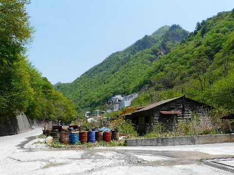 鉱山道路編'09。 色々と寄り道しましたが・・・ って言うか実際には、もっとあちこち立ち寄っているんですけどね! そして30℃近い気温の中、いい加減フラフラとしながら・・・(倒) さて、やっと居住区までやって来ました! とりあえず解体の手は進んでいないようです!! しかし・・・ 一昨年までは鉱山の従業員さんたちが住んでいた建物があり、そしてこれらの施設の手入れもしていたようなのですが・・・ ちなみに、こちらは2006年5月当時のもの。 中央の駐車場には、従業員の方々の車が停まっています。 今では、この区画への立ち入りが禁止され・・・ 物凄く寂しい状態になっています(涙)。 これは、部外者の度重なる不法侵入やイタズラなどが一因となっています!(怒) 今まで何度も書きましたが、あくまでこの場所は鉱山の所有物です!! 許可無く入れば不法侵入で検挙される対象となりますからね! その辺を注意してくださいね!!(願) なお・・・ 人の出入りが禁止され・・・ 日頃の手入れがされなくなった建物と言うものは・・・(涙) こんな山の中だと、自然に侵食されるスピードが速いようですね?(汗) 一昨年の台風で喰らった痛手もありますが・・・ そう長く無い時期に、建物の維持が難しくなってしまいそうな気が・・・ つづく。