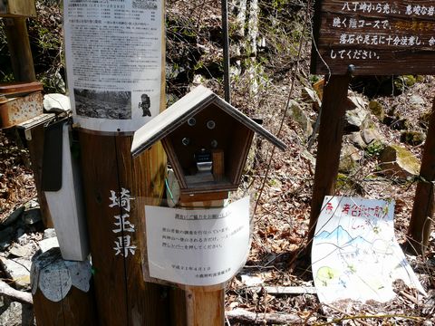 鉱山道路編2010。 下り勾配が一段落した位置に一つの沢があり・・・ ソコには両神山への登山口があります! 両神山。 一度は登ってみたい山なんですけどね! 何しろ物凄く奥深い位置にあって! いかも岩場が盛り沢山!! って言うか登山といったら稜線の岩場と言うのが自分のセオリー?? 山に行くときは、どうしても岩場がある山とルートを選んでしまう癖がいまだに抜けなかったりしますが・・・(困) ま、そんな事はさておき!! とにかくです! この登山口は、超・上級者向けコース(?)の入口。 自分。 一度でいいから、この入り口がアタックをかけてみたい気がするんですけどね! ただし、単独行では危険なコースらしいので!(悔) それに、ここまでのアプローチが大変なので! って言うか、車でなんてココまで来たくないですし! バイクなら全然構わないけど! って言うか、冬でなければ普通にいつでも来れちゃいますけど! でもこのルート。 実は去年までは「廃道」だったんです!! 画像は5年前のもの。 立派な入口の看板があるのに・・・ 何故か廃道の文字が!! この矛盾さが、物凄く気になっていたんですけどね! そして・・・ 「廃道」の看板の警告にも関わらず・・・ いつも誰かしら、ここから入山した形跡があったんですけど(困) って言うか、自分を含めて・・・ 山家のファイティングスピリッツに火を点けちゃうんですよね!(笑) この登山口。 って言うか「難しい」と言われると、意地でも踏破してみたくなるのが人間と言う生き物?? あまりに入山者が多かったせいか? すでに廃道ではなくなり、現役道として(おそらく整備され直して)復活しちゃったみたいなんです!! ああ・・・ この奥に岩場と鎖場が待ってる!!(悔) いつかは攻略に来たいぞ! でも・・・ 結局、山に登らずに、その編の廃鉱に線路を探しにいっちゃいそうな気が!!(笑)