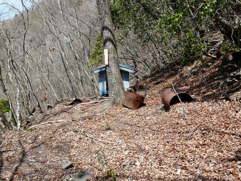 鉱山道路編2010。 結構足場が悪そうな斜面。 ただし、そんなに急ではない! でも結構崩れやすそうな雰囲気漂いまくり!!(怖) けど、この上には・・・ コレが待ち受けており・・・(困) って言うか、使われていないとは言え現役の鉱山の施設の一つですからね。(たぶん) 勝手に山の中に入ると不法侵入に当たりますから!! でもですよ!! 既に廃工場は撤去され(悲) すでに誰も入って来ることの無くなったはずの崖の上。 って言うか、草木が生えていないこの時期を逃すと2度とこの斜面を上がれないような気がして・・・(困) ガサゴソ、ガサゴソ・・・(攀) あ、なんか、停めてあるF650GSが下の方に見えるような気が!! って言うか・・・ 良い子は絶対にまねしちゃダメだぞモードついに発動??(困) って言うか!!(訴) もう我慢がなんねいやっ! と言う事で! 目の前に倒木とか結構凄いけど! 正直言って、奥多摩湖ロープウェーの三頭山口駅に攀じ登るより安全だし! 確かに足場がガレてて少し危険だけど! 落ち葉がフカフカしていて、思った以上にグリップが良いから! そ・れ・に・・・ 誰も通る気配もないですしね!!(嬉) って事で登ってます! もちろん崖を!!(困) さ・・・ この上に待ち受ける小屋らしきものの正体とは!(謎) 続きます。
