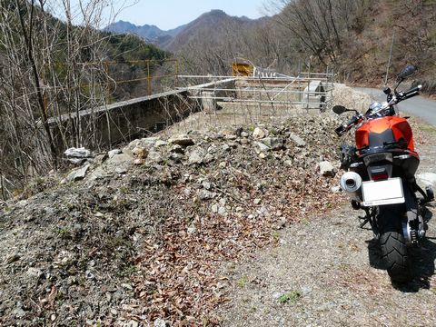 まずは、下のリンクをクリックしてみて欲しい! 念のために言っておきますが、けっして怪しいサイトに繋がったりしないので安心してくださいね! http://www.dammaps.jp/?p=11&d=0636 大洞ダム ダム仲間?のEthさんに教えてもらった・・・ とにかくです! こんな場所にダムがあるの?? と疑いたくなるような山の中。 って言うか、入り込むのすら大変な場所! 信じられないかもしれませんが! ダムが存在するんです! が! 正式な地番とか無いので!(困) 住所は、埼玉県秩父市大滝としか表記されず! 地番も「字」もありません! 郵便物とか絶対に届かない場所? 恐らく、クロネ★ヤマトすら来てくれません!? って言うか、無人のダムですから届く必要は無いのですが・・・ そして、そのダムに行くには! とにかくです! 普通自動車では入るのが困難なダート区間を走らないといけないらしく・・・ 徒歩で行くのが一番確実らしく・・・ しかも最後は、藪漕ぎをしないと到着できないような場所らしいんですよ! 画像は、旧・三峰有料道路(現在は無料開放中)の某所。 今回は、ココからスタートします! 大洞ダムの存在を知ってから1年半。 この付近まで車で来て、あとは登山用装備で山に入るか? それとも、ダメ元で行ける所までエフハチで入って、そこから歩くか? などと色々考えていたんですけどね・・・ F650GSなんてモノを手に入れてしまった自分は! ついムラムラと・・・(困) いや、まだ慣らし運転中だから、ダート区間を走るのはやめておこうかと思ったのですが! まだ草木が茂る前の5月5日。 前日に意地で仕事を終わらせ、この地に入り込んでしまったんです! さ・・・ この時点では、広くて快適そうな道なんですけどね!? さ・・・ この先、一体何が待ち受けているんでしょう? 大洞ダム・1stコンタクト編、スタートです!