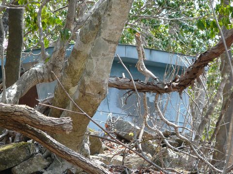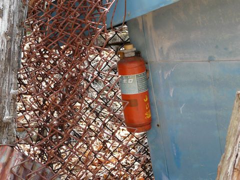 謎の小屋らしき物が見えた崖の上・・・ 付近に誰もいないことを良いことに?? って言うか、この機を逃すと次ぎが無いような気がして!!(焦) ガサゴソと攀じ登った崖の上! ソコに転がるドラム缶らしきモノ? いや、この形はドラム缶ではなく、もしかしたら給水タンク?? さらに、この脇には数々のブリキ缶。 蓋が別体式になっている事から、オイルや溶剤用ではなく・・・ 何かの粉末が入っていたのではないかと?? 更には! 小さいけれど消火器。 その上・・・ 柱が壊れているけど、金網や波板が置いてあって・・・ って言うか、謎の小屋を囲んでいたのではないかと?? 造りはチャチなんだけどね!(弱) 微妙に高床になっていて! 入口のドアには、微妙に頑丈な閂と鍵が取り付けられている!!(怖) って言うかさぁ・・・ 自分、コレを見た瞬間に背筋に寒いものを感じました!!(焦) いや、何となくなんですけどね!! 物凄くヤバイ物だと言う感じがヒシヒシと伝わってくるんですけど!!(怖) 単なる予想ですが! あくまで個人的予想ですが!! この中の物がアレした時。 自分は姿形ともに消失してしまっている気がするんですけど!!(泣) たぶんコレ・・・ 発破用の火薬庫ですよね??(焦) 防爆構造とか全然取っていないけど!(困) 仮にアレしちゃっても、極力被害が少なそうな場所に建ってるし!! さすがに中身は残っていないでしょうけど! って言うか、火薬を放置してたら大変なことですけどね!(ちなみに信管がないと爆発しませんけど) 自分。 ここまで登ってきたことを少し後悔しました。 が!! 振り返ったその先!!(驚) さらに上に登った位置に石垣があって・・・ まだ何かある!!(叫) なんか、深みに嵌ってしまったような気が・・・(困) 恐る恐るですが、この先にも登ってみます! さ・・・ この先に、さらに待ち受けるものとは!? 続けますか?