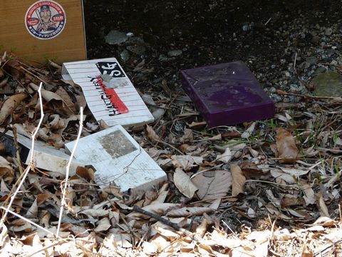 鉱山道路編2010。 道路脇の廃・作業小屋。 確かに経年変化と、風雨の影響で痛みが激しくなってきましたが・・・ 4年前と比べると、確かに小屋の中の物が無くなったりしましたが!(泣) そして。微妙にですが内容物の位置が変わっていたりしますが!(困) コレが不思議と・・・ って言うか、あまりに道路から目立ちすぎるせいなのか? 大きく荒らされた形跡が無いんですよね? 過去の画像を見ながらチェックしていると良く分かります。 変わらないといえば・・・ 廃墟では「半分お約束」の・・・(笑) たぶん、アレなビデオとか!(笑) 鉱山住宅がなくなってしまい、殆ど男ばかりの職場になった鉱山。 下界とも離れ・・・(秩父市内まで1時間以上掛かる) 野郎共の楽しみといったら??(困) なんて話は冗談ですけどね!! そして不思議なのが!! コレを初めて見た4年前は焦りましたけどね!(叫) 採掘に使う火薬を入れる木箱!!(爆発) 信管が入っていなければ爆発することはありませんが! とは言え、足元に突然のようにコレが置いてあったのに気づいたときには、思わず数歩飛び跳ねちゃいましたし!!(逃) でも、この木箱。 屋外に放置されているのに・・・ 冬は雪だって降るのに・・・ 風雨と直射日光を浴びまくっているのに! 4年前から色落ちとかしていないんですよ!(驚) やはり危険なものを入れる箱だけに、塗料とか特殊なものが使われているのでしょうか??(謎) なお次回も、もうちょっと引っ張ります・・・