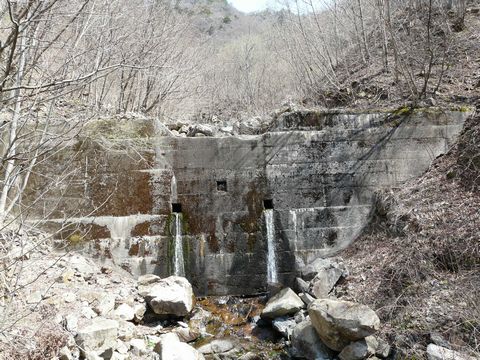 さて・・・ カモシカの存在をすっかり忘れて画像を取り捲っていた「もう一つの理由」は・・・ 画像の赤矢印の辺りにあるんです!! と言うのも・・・ 管理事務所移設のために架けられた仮設橋。 そのためにダム下付近の渓谷の姿が隠れてしまったからなんです!(涙) そして、その矢印付近には・・・ 下の画像は2007年・秋のものですが・・・ 画像中央左側付近に「黒っぽい物」が写っているんですよ! って言うか自分。 この頃から、この手のモノに反応するようになりました!(困) 拡大すると・・・ 何か妙に隧道っぽい!?(涎) 単なる岩陰ではなく・・・・ 単なる洞穴ではなく・・・ 入口に、微妙に柱っぽいモノも見えてる! それに画像右下辺りに、鉄筋が見えてたりする! って実は、この画像・・・ 今日、この書き込みのために過去の画像を整理していたら偶然に発見したんです! それまでは「穴」なのか? それとも単なる影なのか不明だったのですが・・・ やはり記録すると言う事は大切ですよね?(言訳) まさかこんな形で決着が付くとは!? って言うか自分で画像を撮っていて気付かなかったとは! って言うか(コンパクトタイプの)デジカメの場合、ファインダーを覗かずに液晶画面で被写体を識別しますからね! 細かい部分のディテールまで撮影する時点では分からないんですよ!(涙) 家に帰ってから画像処理をして初めて気付くものも多いですから! そして、後になって「なんでココの部分を撮らなかったのか?」と悔し涙を流すことが何度あった事か!?(泣崩) って、一番最初の画像・赤矢印部分。 撮影する時点では「穴があるかどうか不明」だったので・・・ その付近を撮ろうと色んな角度から何枚も撮っているうちにカモシカのことを忘れ・・・ って言うか放置プレイ状態?(困) で、撮れた画像とは!? と・・・ また無駄に次回に引っ張ります!(困)