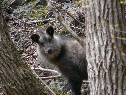 2010春の二瀬ダム編。 二瀬ダム・ダム下へと続く道。 観光用に開放しているわけではなく・・・ ダム関係者と林業従事用に使われている道。 ですから特に案内表示も無く、舗装されても無く、「まんま林道」状態の道。 そして、まず人と合うことは殆どありません! そして・・・ もう少し進めば、ダム下が見える位置まで来たときのことでした! すぐ右上の斜面から・・・(存) ガサガサっ!(蠢) と、何か大型動物っぽいものが動く音が!(焦) ちょ待っ!(叫) もしかして熊?(爆焦) いやいや、ちょっと待て!! この時は3月上旬。 まだ寒い時期だから冬眠から覚めてはいないはず! だとすると猿か!? これも結構厄介だぞ! とは言え、まず単独で行動することは無いはず! それに声を上げて威嚇してくる様子も無い! 待て待て、猪って事は無いよね?(怖) だとしたら、かなり警戒しないと! とにかくです!!(焦) 息を殺し、気配を消し、敵対的行動をとるものではないと思わせることが肝要!! 動きを止め・・・ 周りの気配を感じつつ・・・ ゆっくりと音がしたほうを見上げます!! この間、その大型動物らしきものは動く気配も無く・・・ って言うか、この間合い取りの緊張感(静)。 そして微妙に張り詰めた空気! って言うか元々気温が低いから、刺すような空気が漂い・・・(無) おわ! カモシカだよ!!(驚) と言う事は、まず襲ってくることはありません! まだ子供を連れている時期でもありませんし、それにオスですから!! そのカモシカ君。 自分との間合いを維持しつつ・・・ そして、警戒しながらコッチを見ています!! とりあえず緊張が漂う、この時間。 何とかデジカメで画像を撮ろうと・・・ 息を殺したまま! 相手に警戒されないようにしながら・・・ ゆっくりと手を動かし・・・ って元々、ダム下の画像を撮ろうとデジカメを手に持ったままでしたからね! ウエストバックに手をやったり。 何かゴソゴソと動くこともせずに済みますし!! さらに液晶モニター越しに見ればファインダーを覗くこともないので、相手に警戒されずに済みますから!! で、とりあえず2枚!(嬉) 見事カメラ目線のカモシカ君が!(笑) とは言え、この先に進みたいのですが・・・ このカモシカを驚かすことなく進むことは出来るのでしょうか?(困) 色々と思慮に悩みつつ次回へ続く!!