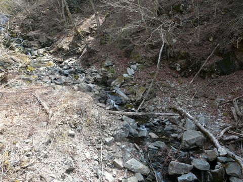 鉱山道路編2010。 両神山への上級者用登山口の脇には、1本の沢が流れています! 春先の多雨に関わらず・・・ それほど増水している感じはないのですが・・・ でもですよ!(驚) この沢・・・ この沢を渡る橋を境に!(忽) 水の流れが突然のように消えちゃうんです!!(驚) 目の前に広がるのは完全な枯れ沢!(唖) って言うか、あの水の流れは一体何処に行っちゃうの??(謎) ふと、そんな事に気付いてしまった自分・・・ 一体、何が起きているのか? 物凄く気になってしまい!! 橋の下に何か特別な排水口でも開いているのかと疑問に思ったのですが・・・ って言うか! そこそこの流れがあったのに! 橋の下の水溜りで勢いが落ち・・・ そのまま消えちゃっているんですけど!!(謎) 一体、ココで何が起きているのでしょう? 地下に浸透するにしても、ここまで突然のように川が消えるものなのでしょうか??? と言う事で、橋の下に入ってみます! ソコに待ち受けているものとは一体何?? 衝撃の次回へ! って、いつまで続くんでしょう?