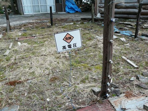 廃村なんだか? それとも営林又は電力会社の施設なのか? マジで不明で、しかも無人の集落の真ん中!(焦) 自分は、ちょっと身の毛の弥立つ物を目にしました!(怖) 木の棒が立っていて・・・ その間に有刺鉄線が張ってある! し・か・も!!(震) ビリビリ来ちゃうyo!!(電) 鹿とか猪避けの柵には見えません! 何せ、この中に作物とか何もないですし! 一体何なんだ? この空間!?(怖) 周りの無人&不気味な静けさが加わり・・・ そして、何か重苦しい空気が漂い・・・ なんか物凄く怖いんですけど!!(泣) まさか! 村から抜けようとした人が逃げないように、ここに監禁??(ガクブル) って、そんな事はないでしょうけど!(笑) いやいや、もしかして1000の縫い目を持つ「あのお方」が、ここで電撃金網デスマッチの練習をしていたとか??(炎) なお・・・ とりあえず電力計は動いていません!(安) でも、微妙に新しいんですけど、この電力計。 しかも去年に検査を受けたばかりの印が付いてる!!(驚) 一体、ここで何が行われているのでしょう??(謎) ただ・・・ 自分の中の何かが言っています。 「あまり深く関わらない方が良い」と! とにかくです! かなり怖いので、見なかったことにして先に進むことにします・・・