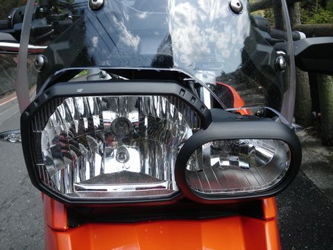 まだ全体像が出てこない新F650GSデビュー編。 ロードもダートも走れるバイク。 ある意味・・・ どちら付かずのバイクになってしまう危険性もあるのですが! このバイク。 おそろい事に、ロードでは「コーナリングマシン」と化す事が分かりました!(焦) そりゃ、エフハチのような軽快性も無いけど! 車高が高く、ホイール径も大きい分。 エフハチみたいに、アクセルのオン・オフだけで勝手に切り返しをしてくれたりとかしないけど! そして、久々にのったオフ車のライディングポジションは・・・ って言うか、ここ7年近く。 前傾姿勢を強いられるバイクに慣れちゃったので、体重の掛け方とか・・・ 腕の持って行き方とか・・・ 最初、思い出すまで物凄くチグハグな運転をしてたりしたけど! 走らせながら! バイクと対話しながら! って、皆さん。 買ってすぐに改造とかしちゃダメですよ! だって、そのバイクが「どう走りたいのか?」を知ってあげないと! そして、ソレに合わせて走ってあげないと、上手く操作できませんからね! って偉そうな事を言っている自分は・・・ バイクに走ってもらっているだけの状態だったりしますが・・・(汗) とは言え、走らせ方が分かってくると! 上の画像みたいに! しかもですよ、全く意識していないのに!! タイヤの端っこを通り過ぎた位置まで使って走った跡が!!(唖) しかもです! 教習所で習ったような位置(レバーの上)に足の爪先を置いていると! コーナリング中に・・・ 知らないうちに爪先が地面と接触してたりします!(焦) って言うか、物凄い角度までバンクさせて走ってたりするんですよ! 本人は全然気にしていないで走っているのに、前を走っている人達が道を譲ってくれるような状態に!!(唖) って言うか、見てて怖いみたい? と言う自分も以前に・・・ 後方を走るGS軍団のバンク角の凄さに恐怖して道を譲ったことがありますが・・・(震) 本人が自覚することなく、そんな走りをしちゃう「ある意味危険なバイク」だったりするようです!!(困) なお、シートに関しては! 日本人の体型に合わせて、ローシートが標準装備されている日本向け仕様。 このシートのおかげで、両足が地面に届き!(凄) ある意味、車高の低いはずのエフハチよりも足付きが良かったりするのですが! さらに言えば、速度3号よりも全然楽チン!?(笑) が! 個人的には・・・ シート位置が低すぎる気が! まるでトライアル用のバイクにでも乗っているかのような感じになっちゃうんです。 って言うか、ハンドル位置が相対的に高く感じてしまう? 本国(ドイツ)仕様のハイシート(って言うかノーマルシートと言うべき?)の方が、バランス的には良いのではないかと? って言うか元々は、ハイシートを基準に設計されていますからね! これは後々、交換してみて「その差」を体験してみたい気が・・・ そして次回。 やっと全体の画像が出てきます!