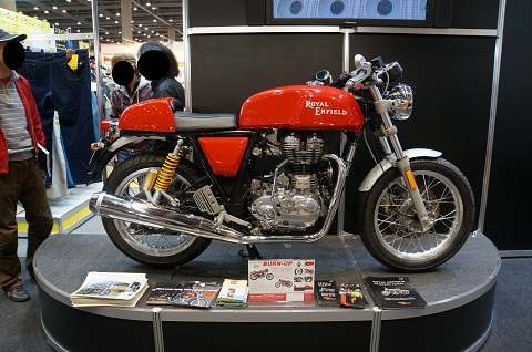 東京モーターサイクルショー2014編 最近。 埼玉県の川口市と東京都の足立区の境に・・・ 工場が出来ました!(驚) 仕事で、よく前を通るのですが・・・ つい、フラフラと立ち寄りたくなるのですが!(焦) 地涙を流しながら我慢して、目の前を通り過ぎている・・・ ロイヤル・エンフィールド 元々はイギリスの由緒あるメーカーでした! インドを植民地支配していた時代・・・ 現地でノックダウン生産させていたものが! なんと! 本家のロイヤル・エンフィールドが廃業しても・・・(焦) インドでは・・・ そのまま造りつづけられました! で! 気が付けば21世紀になっても造ってるよ!(唖) まあ。 多分、地元の人は絶対に買わないんでしょうけどね? こういう場合、大体はそうなのですが・・・ 何か知らないけど、日本人が喜んで買ってくれるから・・・ と言う理由で、いまだに造ってます! そして! そのロイヤル・エンフィールドに! 新しいバイクが? 追加されました! って言うか、カフェレーサー風にカスタムされたバイクが! で! さすがに、キャブレターのままだとマズイと言う事で!(焦) 排ガス規制とか絶対に通らないし・・・(困) と言う事で! 数年前からFI化されています! 更に! 日本向けに? ちゃんと右側がブレーキペダルになったぞ!! って言うか、本当に昔のまま造りつづけていたので! 往年のイギリス車のまま! ブレーキが右側。 左足で、ギアを操作する! その構造のまま造っていたんですけど! で・・・ 一部が、日本向けに・・・ 逆のパターンで! 彼方此方リンクさせながら、無理やり操作するようにしていたのですが! 壊れやすかったらしい? で! 今回から・・・ 妙に安っぽいけど?? 専用のステップが造られました! ついでに、ブレーキのドラムからディスクに変更されています。 で! サスペンションも、リザーバータンク別体式の・・・ って、コレも何となく安っぽいな?(涙) でも・・・ もうコレで生きた化石とか言わせない? だけど! 売れるのは、たぶん・・・ 相変わらず、この旧式仕様の方なんだろうな?(焦) エンジンとブレーキ以外は、生きた化石のままのロイヤル・エンフィールド。 意外と最近・・・ 走っているのを見かけるようになってきたし!(驚) そして! この手の物を喜んで買うのは日本人だけと・・・ 現地では、相変らず言われているのかと??にほんブログ村