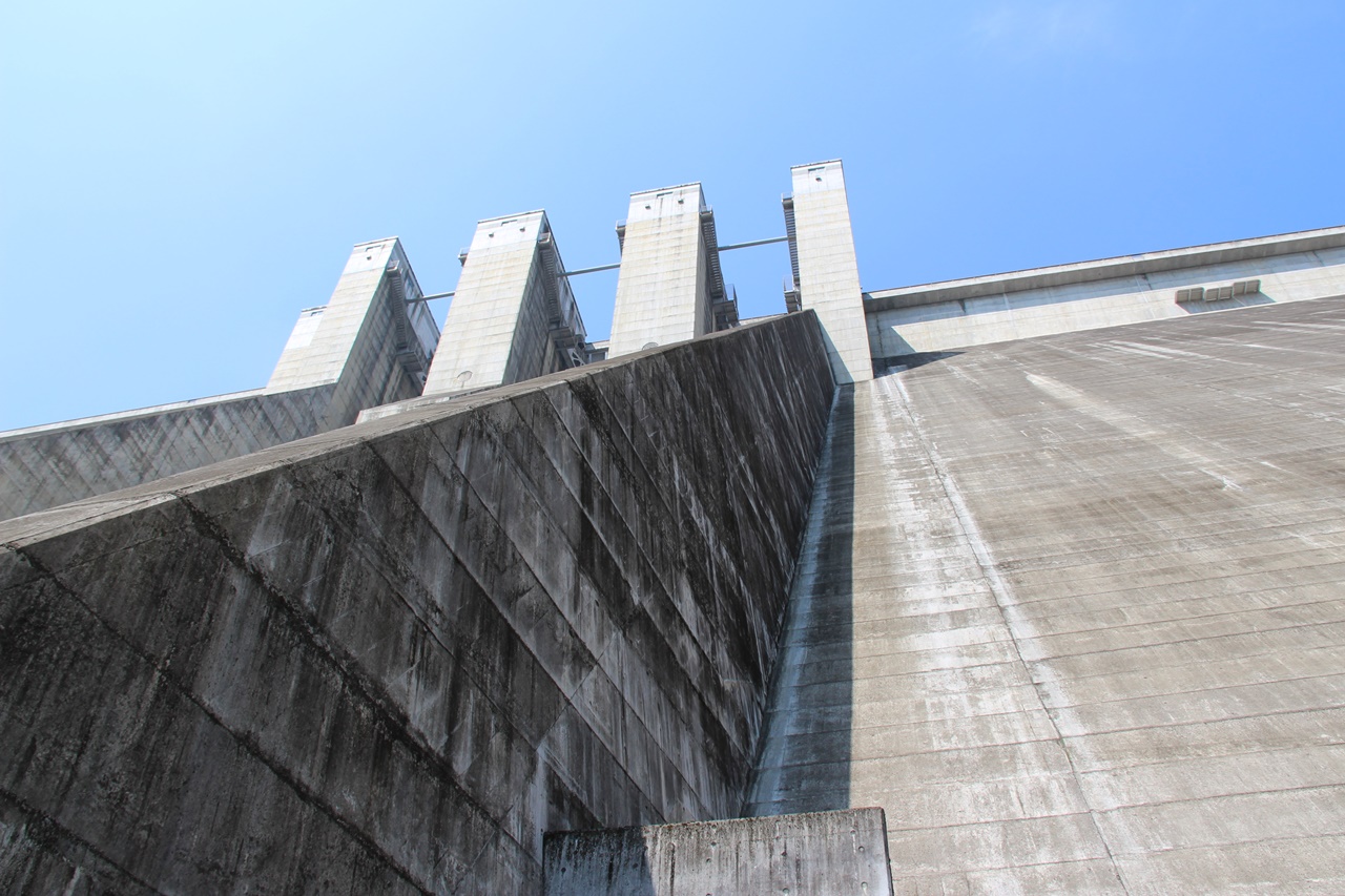 ラスト100段!(叫) また、ココで・・・ 堤体にスリスリしながら画像を! って、寄りかかって・・・ その度に起き上がるのも、結構辛くなってきたぞ! たたでさえ暑いのに(泣) 汗かいた分の水分補給も残りわずになって来たし! して残りも僅か! この付近から、傾斜が緩くなり・・・ 階段も幅が広くになって来ました! そして、格段の踊り場も広くなってきたので! 気分的にも楽になって来たぞ? そして、またスリスリするついでに・・・ 真横から、堤体の角度が判るような画像を!! そして・・・ 何層にもコンクリートの層を積み上げている様子が良く判りますよね! 基礎固めが終わってから・・・ コンクリートを打ち始めて! 堤体の完成までは2年も掛からないのですが・・・ 現場作業をする人達は、結構気が遠くなりそうな気分なのではないかと? 毎日、同じようで 全く違う作業をしているのですが? ずって何年も、コンクリ打っては・・・ また上に打ち直しみたいな? しかも、どんどん高さが上がっていくので! 作業は辛くなっていく(作業面積は減りますが) 少しずつ、形になっていくのは嬉しいけど・・・ また今日も同じ作業か? しかも、夏の暑い時でも・・・ 冬の凍り付くような寒さの中でも・・・ って、コンクリートの配合や硬化時間が全く異なるので! 監督さんは、その指示のたし方が季節や温度によって異なってくる分 マジで大変なのでしょうけど・・・ 下請けさんや、孫請けの作業員さんたちは・・・ 単純労働の繰り返しになる事には変わりありませんから!!(泣) なんて事を考えながら・・・ 自分が、たった435段の階段を降りるのを辛いとか言っちゃ失礼に当たるな?(平謝) そして・・・ やっとゴールが近づいてきました! やっぱし下から見上げると迫力が違うな!(凄) ここまで我慢して下って来た甲斐はあった・・・ よね? そして何より! 長かったよ! ここまで来るの・・・ 特に階段の狭い部分が大変だったよ! そうして・・・ やっとゴール! って、高低差が108mもあったのか? 煩悩の数だけの高さか? きっとココを登る事で修業になるって事か? もう、今日は登りたくないけどね!(泣) で。 下り終わって! ハアハア・・・ さあ、目の前にある次の獲物に向かってゴー!(叫) 疲れとか、一瞬で忘れてるし・・・・(困) にほんブログ村