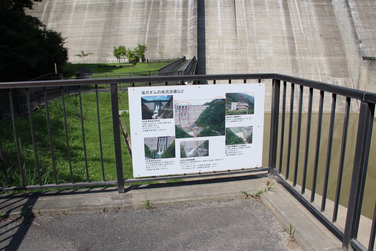 滝山ダム2018夏編 看板ネタで、もう1日引っ張れる嬉しさ!(笑) やっぱし、ダムネタは良いよね・・・ 引っ張り要素満載で!(困) さて! 滝沢ダムには、4種類の放水口があります!! 興奮すると、ありとあらゆる穴から色んな液体を放水! って事は無く・・・ 今年の5月に行われた放水試験を観に行けなかった事がマジで悔しすぎる非常用洪水吐! まあ・・・ ココから放水するような事態になる事だけは絶対に避けたい!(願) 上流で、想定外の雨が降って! ダムの貯水量が一気に上昇する危険性が出て来た時!(溢) このゲートを解放することになるのですが!! 要は、もう・・・ 溢れちゃうから、ダムで支えきれなくなってしまった時 と言う事です(泣) 下流には、かなりの被害が出てしまう可能性が高いんです!! それでも、ギリギリの頃で! ゲートの開放量を調整して、被害を最小限にとどめるよう! 中の人は頑張るんですけどね! あと・・・ 早期に避難警報を発令するのですが・・・ 先日の日吉ダムのように、あまりに急激に水位が上がると間に合わない時が!(泣) って、2007年の台風9号の時も・・・ 小河内ダムで、一晩で700mmを超える雨が降って! 夜中に緊急放水することになり! 鳩の巣渓谷が水没するとか・・・(怖) 想定してなかったような? って言うか、今まで記録して事が無かったので(困) 緊急時のマニュアルが不備だったりして(焦) 何が起こるのか? 解からない例が沢山出てきました(困) だけど! 堤体が決壊するという最悪の事態だけは避けるように設計されています で、次に・・・ 通常・・・ 流入量が増えて、通常の放水量を上回ってしまった時! そして・・・ 非常用洪水吐の所まで水位を上げないようにするために出すのが! 常用洪水吐 主に台風の通過した後とかに発動することが多いのですが! 今回は、そこまでの雨量が無かったと! そして・・・ この常用洪水吐が発動するときは、下流に水位も上がってしまうので!(困) 必ず警報が鳴ります!! と、同時に下流の市町村にも水位上昇に関する情報が流れます!! で・・・ 一旦、放水が始まると・・・ 上流から流れ込む水量が減るまで、けっこう長い間続くことになるのですが・・・ 最近は、なかなか観る機会がないぞ? 宮ヶ瀬ダムとか、観光放水と称して週に2回くらい(15分程度)放水してくれるけど! 荒川水系のダムは、そこまでサービス良くないしね!(涙) という話は置いといて! 今回、放水していたはずなのは? この利水用洪水吐 とは言え! ココが放水している時・・・ ダム下広場や、吊り橋は通行禁止になる事も多かったりするので(焦) こんな貸し切り状態は満喫できなかった? ただし! 毎年、6月から7月に掛けて・・・ 梅雨や台風に備えて、わざと水位を下げるために! 微妙に放水量を減らして放水するんですよ! その時は!(叫) 連日、大騒ぎだぞ!!(踊) だけど・・・(悔) ちょっと今回は遅かったな?(悔) まあ・・・ 放水中はダム下に入れなかったかもしれないけど? 何しろ(焦) あの、泥汚れ具合! 周りに舞っている水飛沫を浴びるだけでも大変な事になっていたような気もしますし・・・(茶) この泥水 帰ってから洗濯が大変そうだぞ!!(泣) 通常の放水 って言うか、日常的に放水している場所・・・ これで済んで良かったのかもしれません? そして! これらの放水は・・・ 管理事務所から遠隔操作で! って言うか、職員さん役得で放水堪能しまくり で・・・ ダム下で怪しいことをしている自分も、常時監視対象になって ませんよ!(誓) たぶん・・・ にほんブログ村