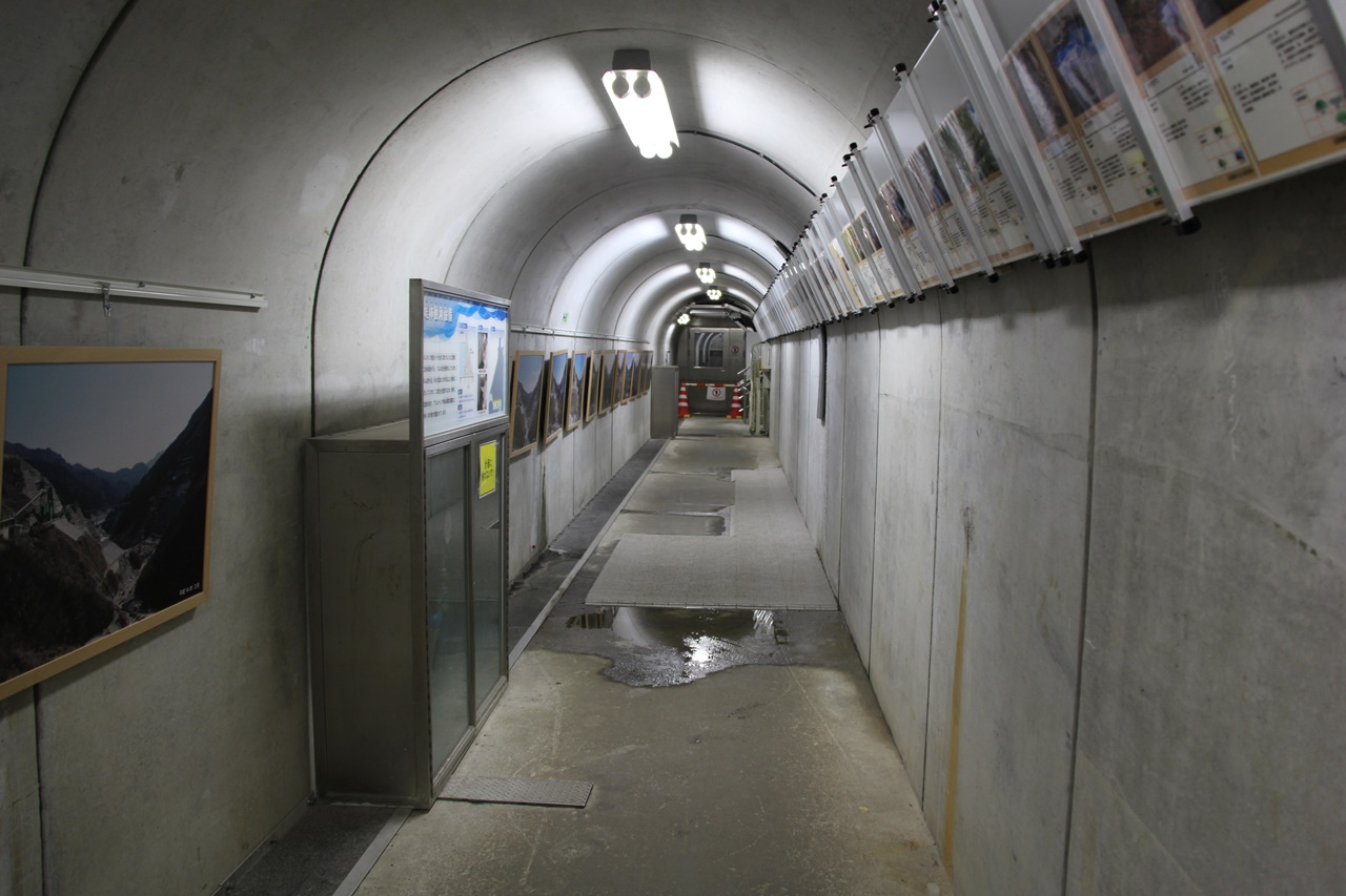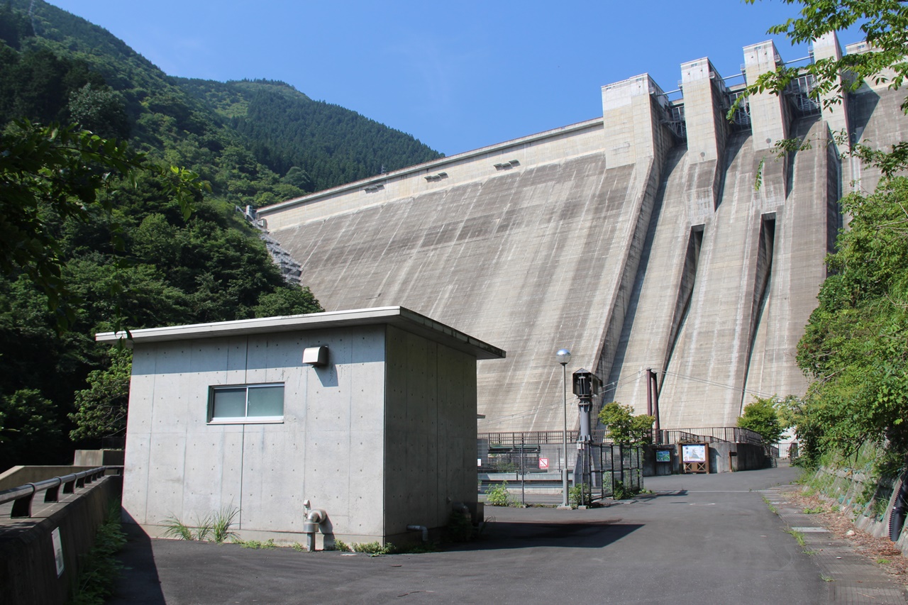 なんか噂によると・・・ 荒川の水位を保つために、また数日前に放水したらしいです!!(悔) くっ! ここ2年くらいは、自分が色々と忙しかったのもあるけど(涙) 放水している所を観れた記憶が殆どないな!! なお・・・ 現在、標高が460m って、意外と低い位置にある? って言うか、秩父市自体の標高はそれほど高くない? のに・・・ あの鉱山道路の鉱山が標高765m(事務所の位置で)とか(唖) この付近の地形の急峻さを物語ってますよね! 直線距離にして十数キロしか離れていないのに!! しかも・・・ 堤体の上までだけでも100mの標高差がある! そんだけ深い谷が存在していたと言う事になるんですよ、この場所に!!(凄) 昭和30年代末期に地質調査開始してから、竣工まで半世紀近くかかって完成した滝沢ダム! やっぱし、短納期で造ろうとしちゃダメなんですね!(困) しかも、図面だけあれば完成できるものではないんですよね・・・ なお! 朝9時半を過ぎた時点で、既に3℃を超え! かなり暑い! って言うか、標高460mなんて全然涼しくないぞ!(困) いや、昔は涼しかったのかもしれないけどね? この日 風も殆ど吹いていなかったので! 冗談抜きに暑い!!(溶) 何か飲み物を持って来なかって事を激しく反省し始めた自分(涙) とりあえずだ! ハアハア・・・ 近い、近いよ! 堤体が! ハアハア・・・ だけど!(泣) 太陽の照り返しでコンクリートで温まってきているので・・・ 生暖かいぞ!(困) 本来・・・ ダム湖の水の影響で? 堤体自体は、結構冷やされているんですけどね・・・ 今年は気温が高い日が続いたのと! 太陽光をモロに浴びているのが大きいのでしょうか? 表面の温度は結構暑いです! が!(叫) ベタァッ~(溶) うひゃひゃ、でぃや~みゅ~っ! もし、監視カメラで職員さんが見ていたら(滝汗) 確実に不信者としてマークされているな? 自分! でも、貸し切り状態の今じゃないと! こんな事できないしね!! 間違っても良い子は真似しちゃダメだぞ! 悪い大人の見本みたいなものだからね? ベッタリと堤体に張り付いて・・・ コンクリートがマジで暑いけど!(泣) もう、ハアハアが止まらない!? だけど! こんな角度で撮るチャンスとか! 滅多にないしね!! 中毒者向けの じゃなかった!(滝汗) 上級者向けの?(笑) アングル! もう、既に暑さで理性もぶっ飛び掛かっているから関係ないよね? でも・・・ そろそろ、暑さで体力の限界が! って言うか、堤体の上まで行って! 管理事務所前の自販機で何か飲み物でも買わないと、熱中症になりそうだぞ!!(泣) 上に行くエレベーター! まさか10時からとか言わないよね?? こんな場所で、あと10分以上待っていたら・・・ ちょっとヤヴァイ状態になりそうだぞ!(泣) そして 恐る恐る、監査廊入口へと向かう自分 もし本当に閉まっていたら!(泣) 駐車場まで500m以上(時間にして7~8分) そこからバイクで、ダム上まで5分程度! 結構辛いぞ? うわ!(泣崩) 閉切の文字が! 終わった・・・ 自分 もしかして本当に終ったかもしれない?(涙) って言うか、詰んでるよね? もう、半分・・・ 神にでもすがる思いでドアノブを!!(叫) あ・い・て・た・YO! しかも!(爽) 涼しい! って言うか、涼しい通り越して寒い!!(震) 汗かいてるから、それが冷やされて・・・ シャツがチベタイ! ちなみに! 堤体内部は、水温の影響を受けて気温20℃を下回っています! クーラーなんてついてません!(よく勘違いする人がいます) 真夏でも、こんな物です! 外との温度差が物凄く激しいので! ちょっとご年配の方には辛いかもしれません? 逆に冬場は水温の方が気温よりも高いので・・・ 堤体が暖められていて、暖かいんですよ!(堤体内部の温度は殆ど夏と同じです) あと余談ですが! ダムの堤体! 実は1本の鉄筋も使っていません!! 何故かと言うと・・・ この温度差で結露して・・・ コンクリート内部にある鉄筋が錆びてしまい・・・ 腐食! 骨抜きになってしまうからなんです! また・・・ コンクリートって、実は少しずつ水を通すんですよ! って言うか、滲みていくというか? コンクリートを混ぜる合わせる時にも水を使いますよね! 完全に水分が飛ぶのに、数年はかかりますから! しかもダムとかいうレベルになると、厚みが違い過ぎるんですよ! 打っては乾かし! 打っては乾かしの繰り返しで・・・ 何層にもコンクリートを重ねて行って堤体を造っているんです!! が! 完全に乾ききる事はありません! しかも! 含まれた水分は熱膨張します! 夏は膨らみ・・・ 冬は縮む! と言う事で? 堤体の位置や形も、目に見えない程度に変形するんです!! そんな中を染み出てくる水の量を、実は毎日のように測定していないといけないんです! どこぞの国で、安く造ろうとして工事中に崩れちゃったダム 完成してからの事も考えなかったよね? 間違いなく(困) コレくらい・・・ 染み出てきて結晶しちゃうのは、想定の内? まあ何はともあれ? 監査廊内の涼しさで復活した自分! 内部に展示されている写真の話題 看板ネタは、以前にやっているので・・・ 今回はパスして!(悔) 次回 エレベーターで地上へと? そして、