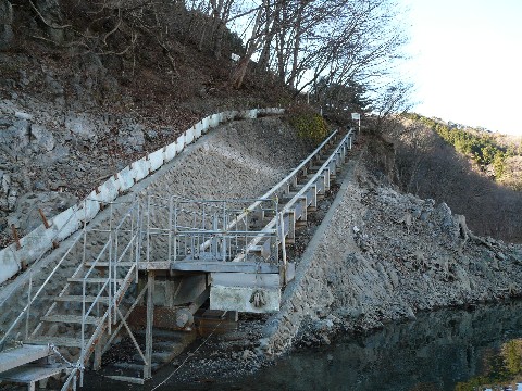 対岸にある散策道までは階段を登らないといけないのですが・・・