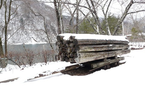 広瀬ダム に向かう途中に発見した、 林鉄のトロッコレプリカ (笑)