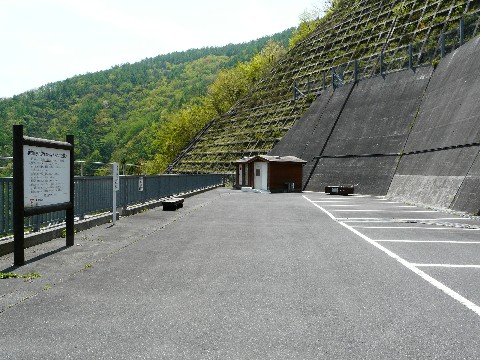 葛野川ダム 右岸 には、少しですが駐車場と一般来訪者用のトイレが設置されています。