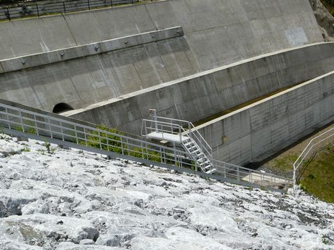 大雨等でダム湖の水位が目一杯になったときに、水を放出するためのシュート。