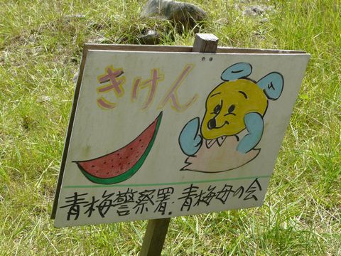 って言うか 「スイカを食べて、このままゴミを捨てて帰ると熊が来る」 と言う、 戒め をこめた注意書きなのでしょうか?