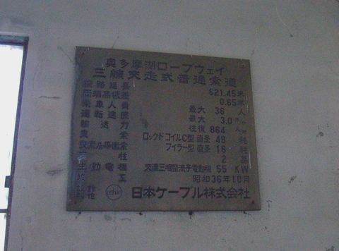 三頭山口駅跡 内に残る 奥多摩湖ロープウェー の名盤。
