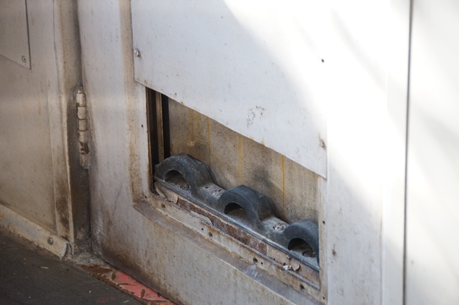 傾いちゃって、完全に閉まらない客室ドア !(泣)