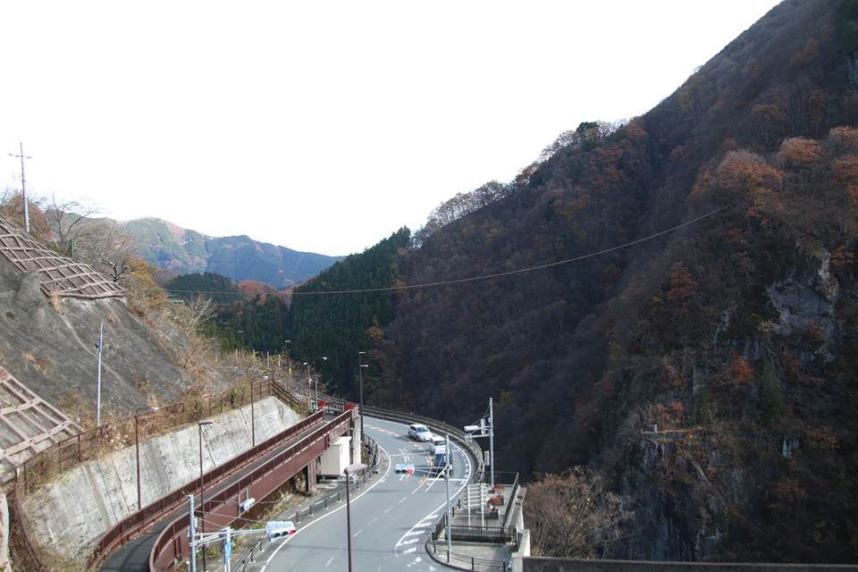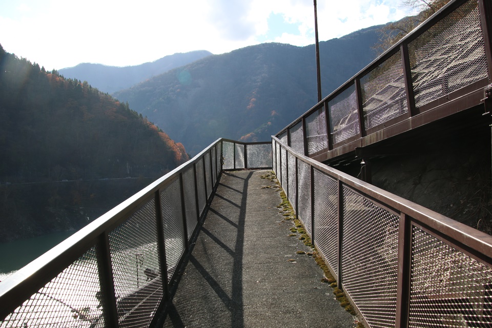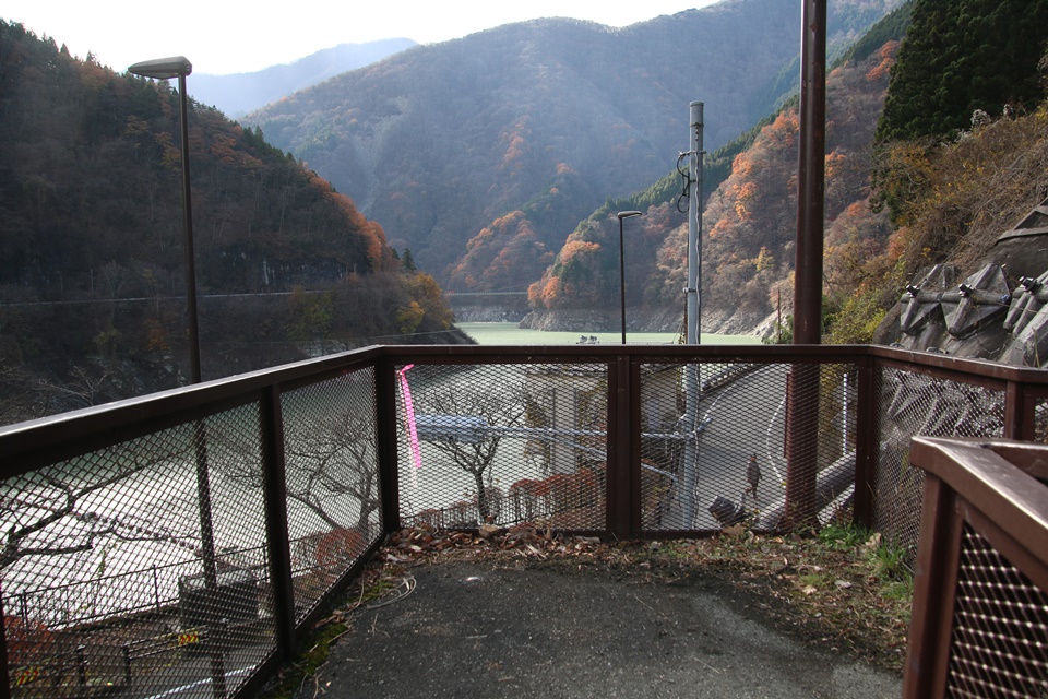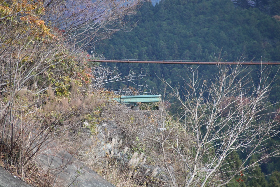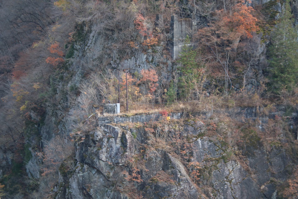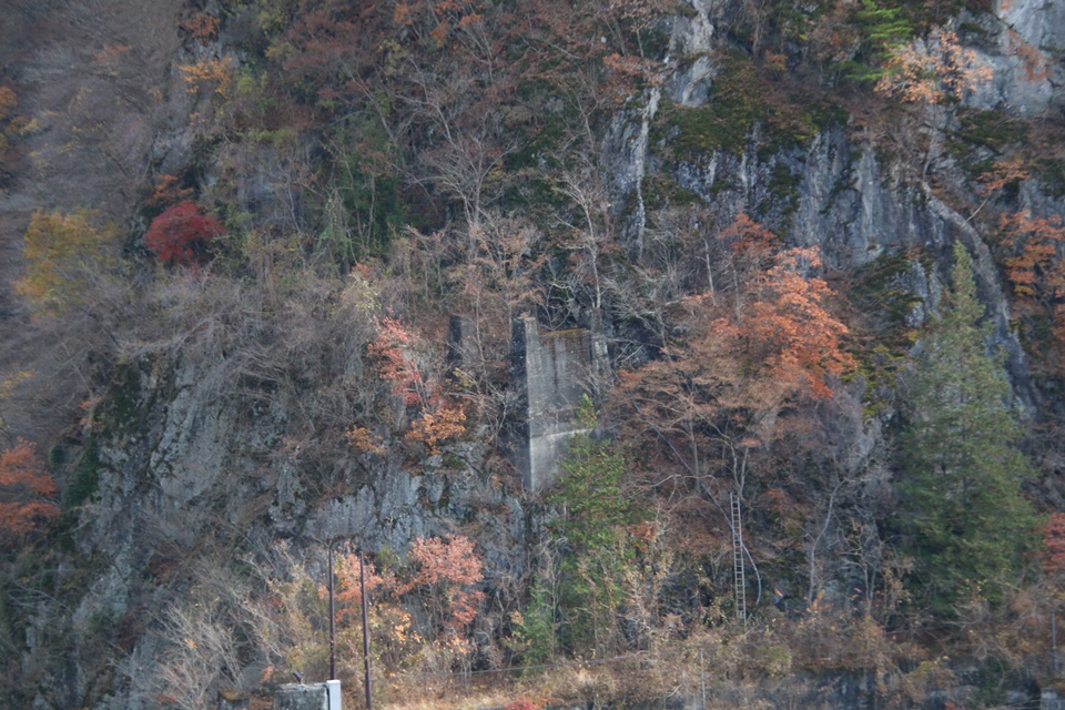 画像左側の案く色づいた木の斜め上あたりに、橋台があったのではないかと