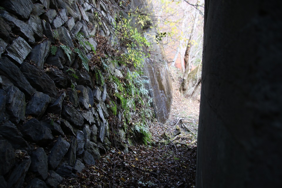 地下坑道から出て来たと思われるベルトコンベアの抗口のある以降の隙間に入ってみます