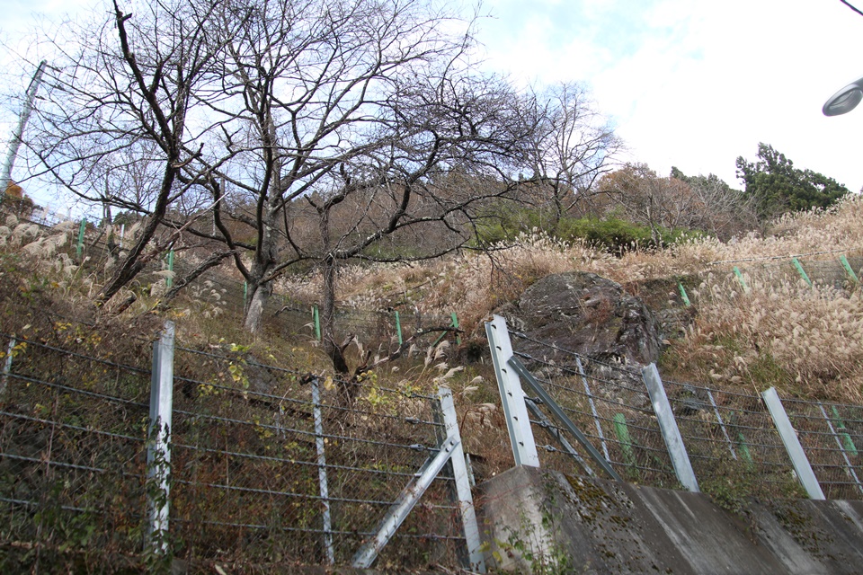 右岸の上部作業道路盤跡の直下20mくらいの所に、フェンスが付いてるよ!(焦)