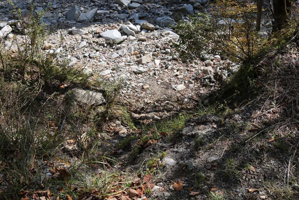 正面に枯れ沢があり・・・