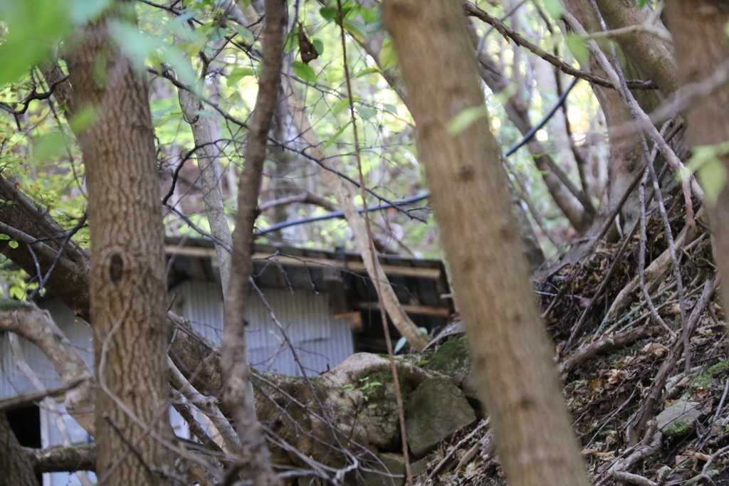 ​右の頭上に廃社宅の基礎部分から崩れ落ちてきた土砂で半分埋まってます(困)
