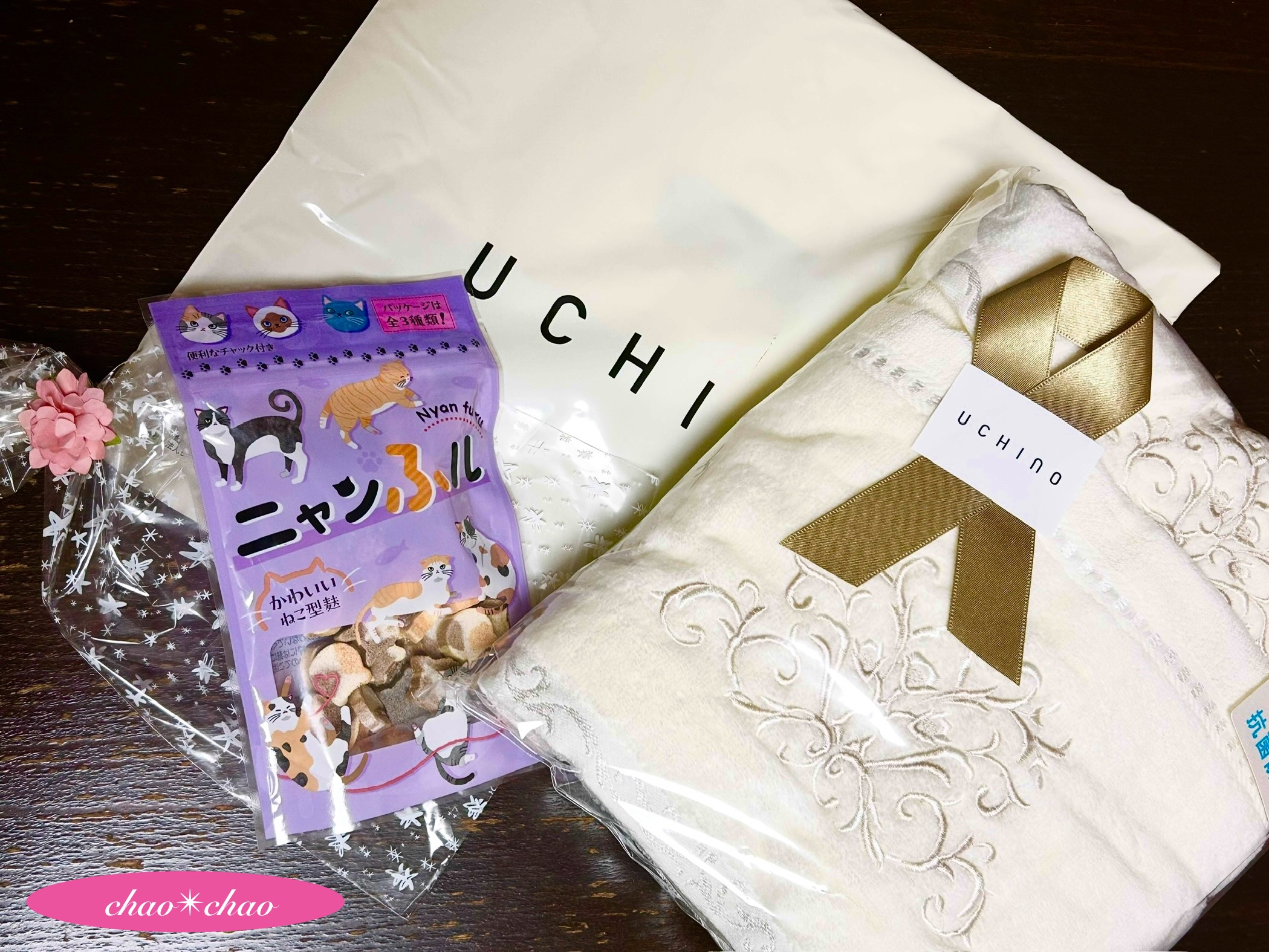 上等上品アイボリー色バスタオル/可愛い猫型の焼き麩!