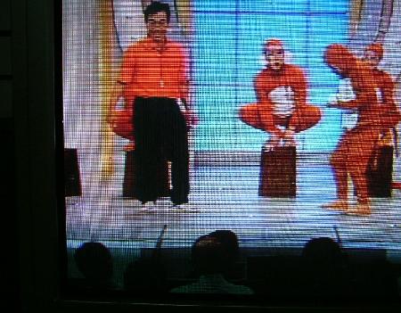楽天日記を更新せずにお風呂アイスして寝てしまおうという天使の誘いに激しく抵抗すること15分、じゃがりこを食べ終わったところでやはり行進、あ、いや、更新することにした。今日はひげ師匠のレッスンを受けてきたが、クラシックギターの奥深さに感動。以前にギター革命のことをちらと聞いたが、今日またちょっと話を聞いて、ほぇ~~~~とうなる。さらに新しい技を教えてもらい、ふたたびほぇ~~~~。さらに、次回までにそれを入れて練習するようにとのこと。ぐぇ~~~。あ~、師匠、そんなさわやかな笑顔であたしをいじめないでくださいな。詳しくは後日。さて、今日の昼、私がテレビに出ていた。いつの間に・・・・? はて?NHKのお昼の番組、「金曜バラエティ」。今日は「清水アキラとものまねさる軍団」。そのさる軍団の中になんと!「チャッピー」という名札をつけてるさるがいるではないか!! まんなかのやつがそうだ。芸の下手糞なあほなさる。あれは絶対あたしやない。あたしの名前を語るふとどきなやつめ。あ、でも、赤いかぶりもの、かわいいやん。貸してくれたら許してあげてもいいで。