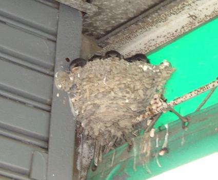 ひげ師匠のレッスンの帰り、ふと視線を感じて振り返ると、つばめっちたちでした。 5~6羽いたかなあ。私が「なんかようかい?」と目をむけると、頭をひっこめました。それにしてもおかあさんつばめは大忙しですね。何回もえさを運んでこなければならないのですよ。子供たちみんなよく食べるもんなぁ。誰かさんみたいやわ。