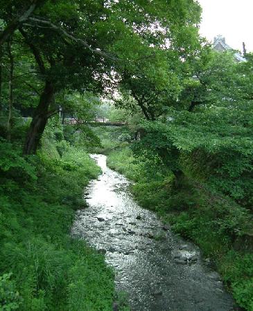 あまりにも濃いご対面をなんとか必死ですませ、家路を急ぐ私の目に映ったものは・・・ 茶比村駅の近くの観音さんの境内をぬけたところ。観音さんの頭がちょっこりみえかくれしています。それにしても、なんとすがすがしい緑。水の音が肌に心地よく響きます。怒涛の中華の後のジャスミンティーのようにさわやか。まるでお風呂上りのあたしみたい。(きゃ)おなかもすっきり。晩御飯のすきやきもおいしくいただけました。