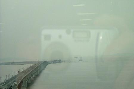 雲の切れ目からさしたお日様が水面にうつっています。スポットライトみたいだなあ。 あそこで踊ってみる? 桧舞台よ。うう。いや、しかし、その前に沈んでおぼれるか。