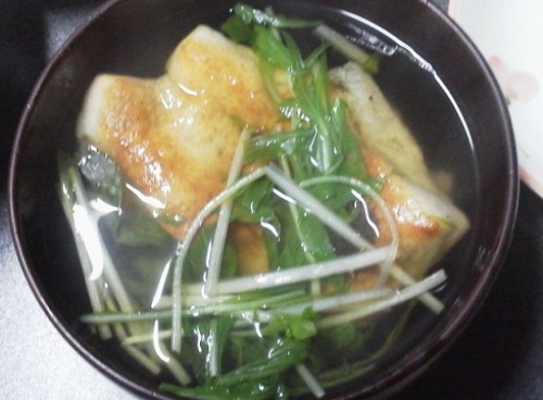 冷凍室に入れたまますっかり忘れていました、お正月のおもち。久しぶりにかっちん雑煮を作りました。まだあたたかい汁物がおいしい夜ですわ。明日の昼は思い切り夏日になるとか。若葉かおる気持ちのいい季節って、今年まだなんかな。