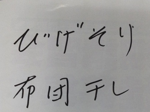 壁に貼ってあったすっとこさんのメモです。 すっとこさんのお顔には、どんなおびげがはえているのでしょう?