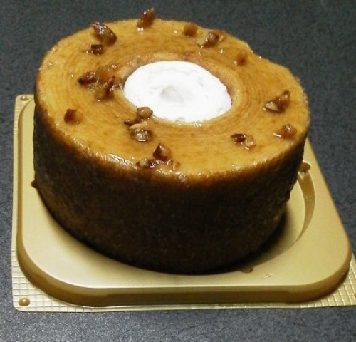 夕方、茶比市のパトロールカーが村内をまわってました。サルが出歩いてるので、見かけても近づかないように、とのこと。あぶないので早めに帰っておやつにしました。メープルナッツバームクーヘン。しっとり生地のバームクーヘンにメイプルシロップ。ナッツがかりかり。ホイップクリームはぽわぽわです。あ~~幸せ♪