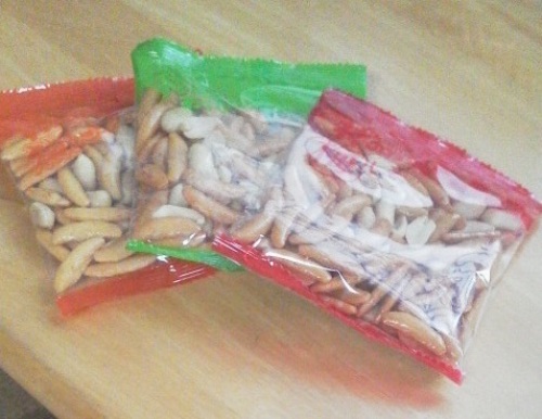 なんだかちょっと大人の気分で柿の種をいただいてみたくなりました。びっくり。今いろいろ出てるのね。左から、柚子胡椒、わさび、梅しそです。柚子胡椒はぴりり、わさびはつ~ん、梅しそはさわやかな酸味にじりっとそれぞれ辛さがちがいます。あ~、しかし、からい!!お口がひりひりします。とろとろプリンでお口直ししないと。
