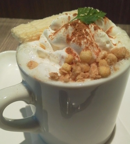 私が出かける日、ちょうどすっとこさんも出かけるときは、ちゃっかり車に乗せてもらって、少し離れたJRの駅まで行きます。そうすると電車賃がほぼ半分になるの。早く着きすぎるのが難やけど(ぜいたくやな)、それで天王寺で時間をつぶすことにしました。天王寺駅は広いので、改札口を出なくても、ちょっとお茶したり、軽く食事できる場所があるんですよ。ホームを移動する通路が広くて、そこにいろいろあって楽しいの。この間はカフェにはいって、アップルパイドリンクをいただいてみました。アップルパイ味の熱いドルチェドリンク。すんごく甘いけど、生クリームがおいしい。さつまいも味っていうのもありました。カロリーたっぷり。栄養満点。おにぎりもあったことだし、やっぱりターンは200回ね。