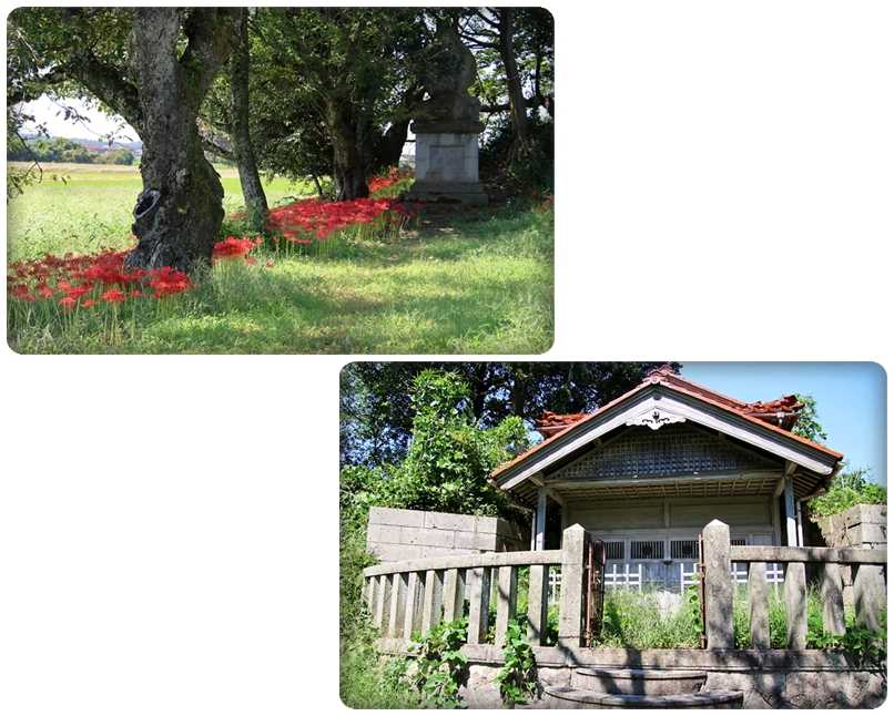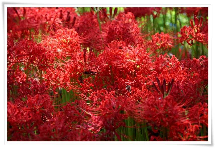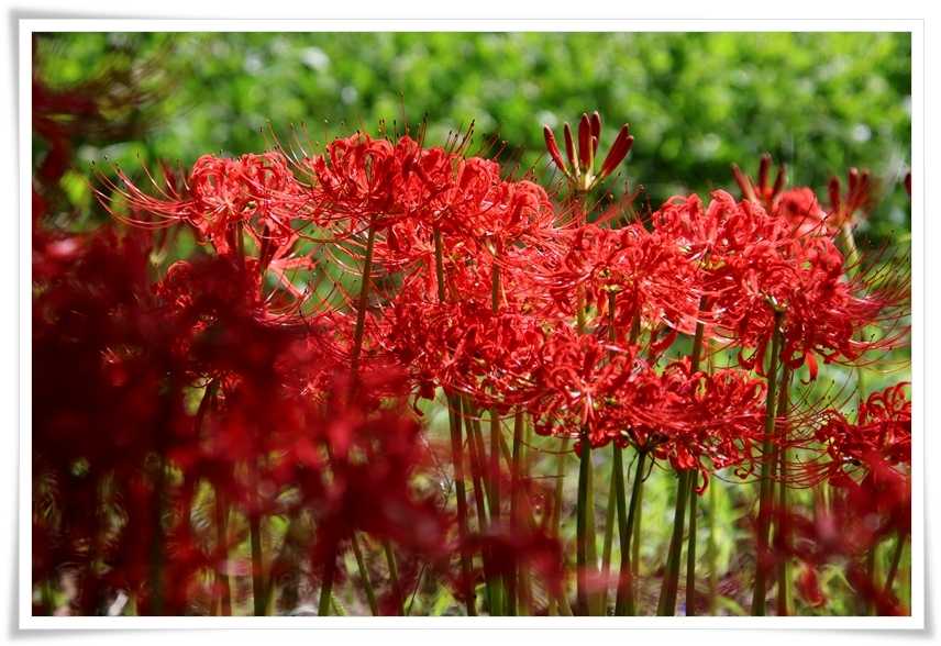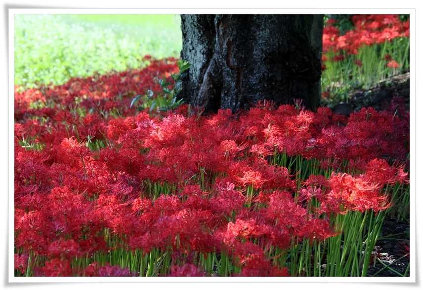 裏側も斜面になったところに一面の彼岸花が咲き乱れています