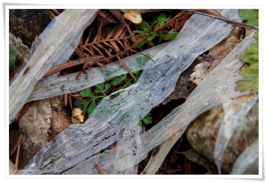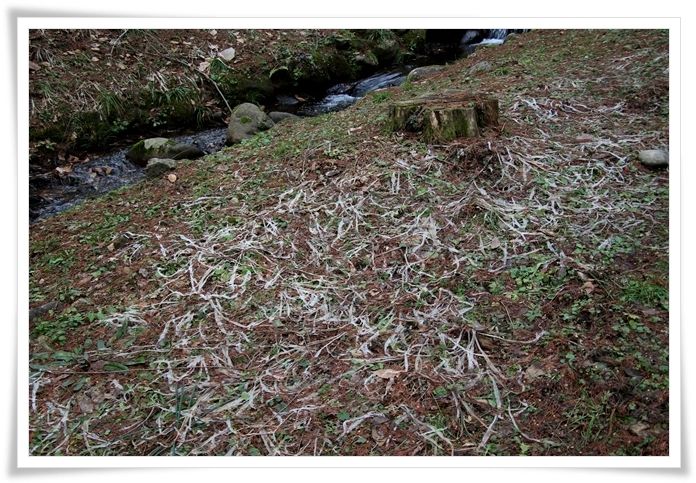 本来は緑色をしていた長い葉っぱが分解して土に還る前の姿だったようです