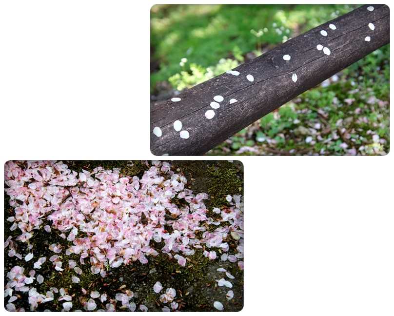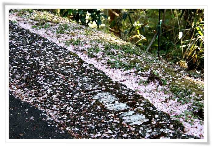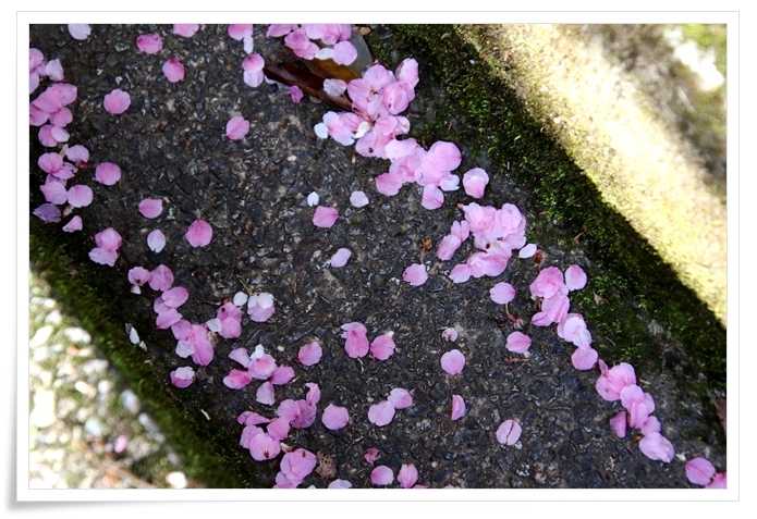 手摺にも地面の凹んだところにも花びらがいっぱいです