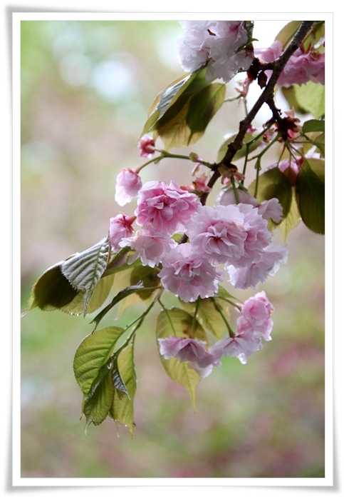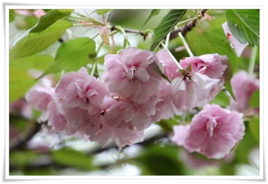 菊咲きの桜だから咲き始めが遅いのと、高い場所に咲いているので・・・・・・