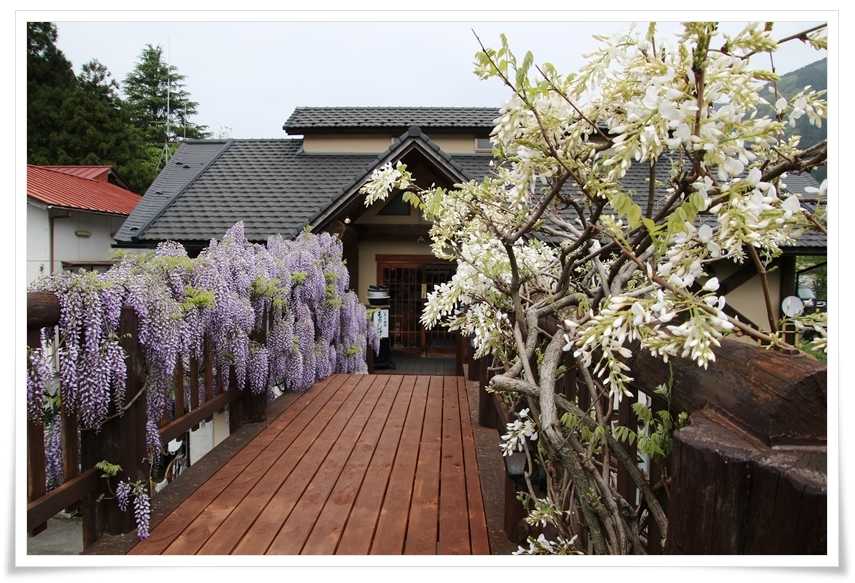 に車を停めて橋を渡るんだけど、両側に綺麗に藤の花が咲いていました