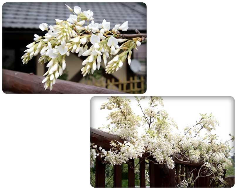 白い藤は他の色の花より咲き始めがちょっと遅いようです