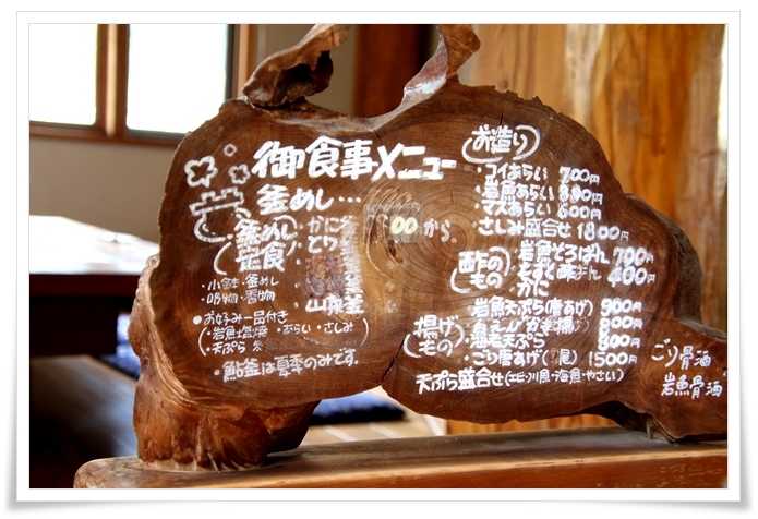 テーブルの上には木の幹の輪切りみたいなのにメニューが書いてありました