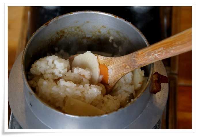ちょうどいいタイミングで 釜めし が炊きあがったので蓋を開けるといい香りが・・・・・・・