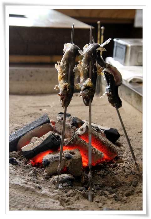 帰り際にお店の入り口近くの囲炉裏で他のお客さん用の岩魚の塩焼きが焼かれていたので